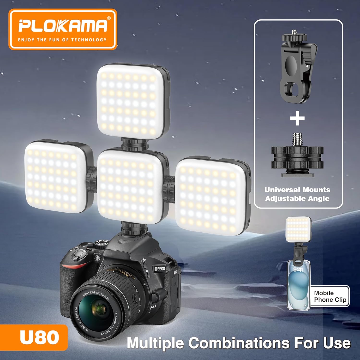 PLOKAMA U80 LED RGB Mobile Phone Light - Video Photography - Mini for Mobile Phones for Professional Photography