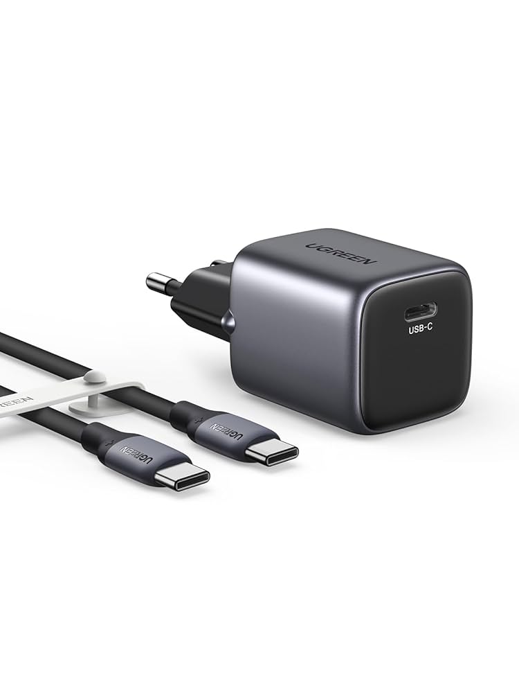 The UGreen Nexode USB-C PD GaN Fast Charger 30W delivers efficient, high-speed charging with advanced GaN technology for greater power density and cooler operation. Designed for professionals, it provides reliable power delivery through a USB-C port, paired with a USB-C to USB-C cable for seamless connection to compatible devices. Its compact design ensures portability without compromising performance, making it ideal for fast charging on the go.